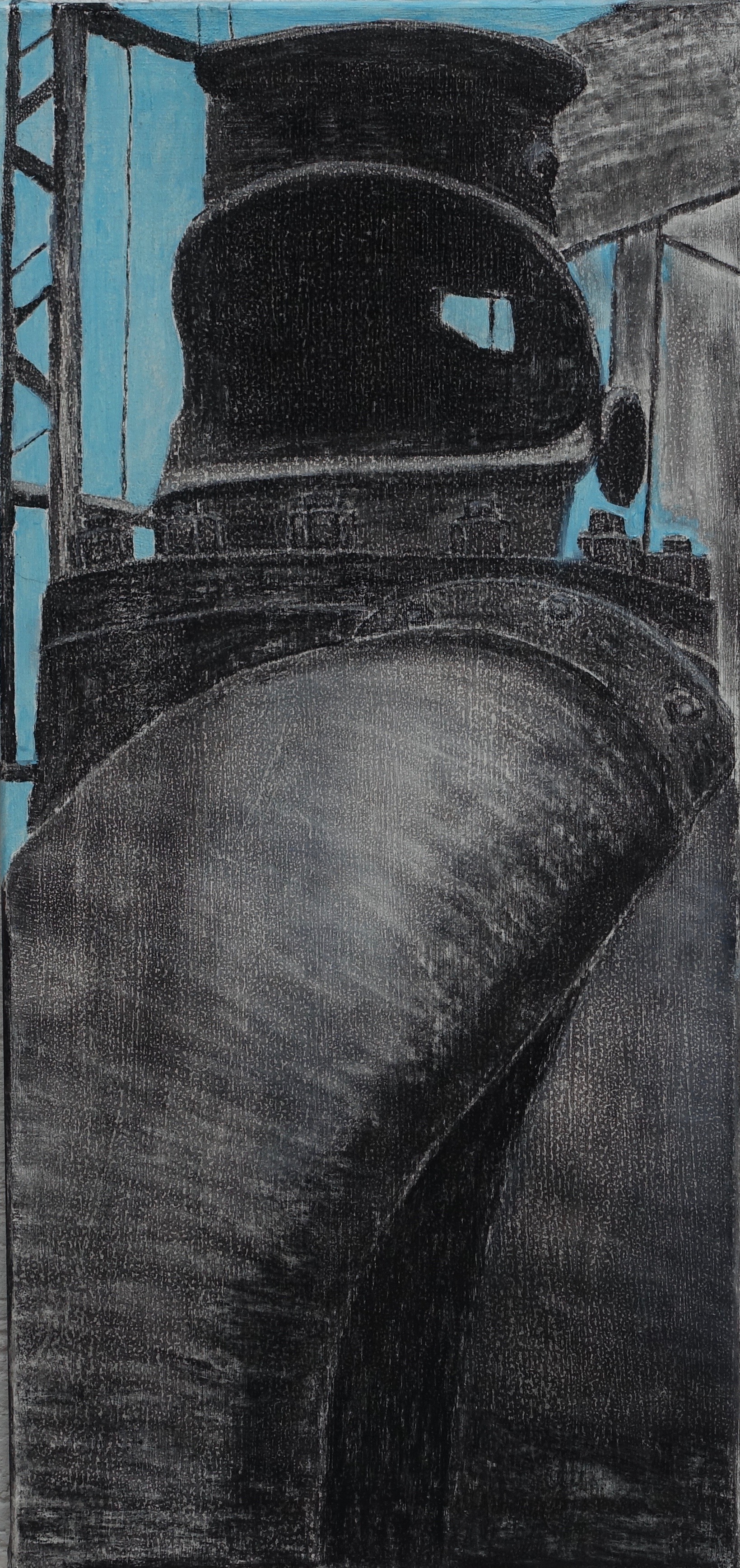 Bild: Windmaschine IV - Kohle und Öl auf Leinwand, 85x40cm, Hans-Jürgen Höllein